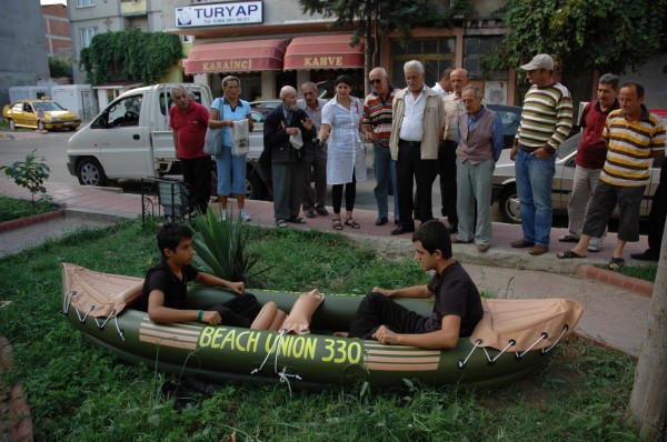 We did this performance in order to raise awareness and warn the public about global warming. If we do not use our water supplies sensibly and we remain insensitive to nature, we will make this universe uninhabitable. First, we will go through drought when our drinking water supplies are depleted, then we will be flooded by melting glaciers as a result of rising temperatures… That is why we chose to row next to the fountain and by the shore.