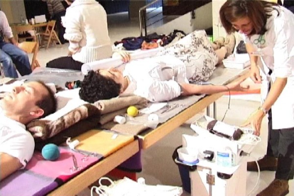20 Ekim 2001’de, NATO bombalamalarından sonra ve tam olarak Tito tarafından yönetilen bağımsız birliklerin Belgrad zafer gününde, Belgrad’ın Çağdaş Sanat Müzesi yeniden kapılarını ziyaretçilerine açtı. Bu vesileyle Róza El-Hassan, “R. ‘nin Nüfus fazlalığı üzerine düşünceleri” adlı işinin beşinci bölümünü hazırladı. “R. Nüfus fazlalığı üzerine düşünceler”; eylemler, heykeller ve gösterilerden oluşan karmaşık bir sanat bütününün başlığı. Belgrad’daki gösteri sırasında El-Hassan, kan bağışında bulundu ve yerel Kızılhaç organizasyonu yararına, toplu bir kan bağışı eylemi düzenledi. Yardım kurumunun derhal bir kan nakli merkezi (kamp yatakları, tıbbi kontrol, olağan teknik cihazlar) kurduğu özel olayda El-Hassan, üstüne bilgisayar basım tekniğiyle gerçek boyutlarında bir Yaser Arafat fotoğrafı basılmış bir çarşaf üzerinde yatıyor. Bu Arafat fotoğrafı, New York’taki 11 Eylül olaylarından sonra dünya- ca tanınan bir medya ikonu haline gelmiş bir fotoğraf. Fotoğrafta Arafat da kan bağışı yaparken resmedilmiş. Bu gerçek boyuttaki çarşaf, kan vermede kullanılan yatağın üstüne seriliyor ve El-Hassan tamamen Arafat’ın bedeninin üstüne denk gelmeyecek şekilde bunun üstüne yatıyor, ayrıca Arap adamın baş kısmı da sanatçınınki tarafından kapanmıyor. Sanatçı gösterisini, Budapeşte ve daha sonra Kızılhaç’ın kurul- duğu ülke yani İsviçre’de Zürih, gibi birçok yerde sundu. Bir yandan mahallerin değişimi, temanın yerel bağlam tarafından belirlenen yorum değişkenlerini ortaya çıkarırken, diğer yandan da yerel bakış açılarına küresel müdahaleyi vurguluyor. Arafat’ın bakış açısını doğrulamak; Belgrad’da ve Budapeşte’de tamamen farklı anlamlar taşıyor. Ayrıca, aynı görsel im, yerel bağlam kapsamında farklı tartışma nedenlerini bile temsil sayabileceğimiz değil, aynı zamanda onun temsili ile ne ölçüde özdeş olduğunun tartışılabilirliği. İmge-im ve anlam doğrudan ve karşılıklı bir ilişki içinde olmadığına göre, mahal yorumu belirliyor. Bir imgenin, nesnenin veya olayın yorumlanmasında yerin kendisi de, seçilmiş bir konum, siyasi, estetik, coğrafi veya kurumsal söylemler tarafından tanımlanmış bir mevki anlamına geliyor. Eldeki sanat yapıtının varsayımı veya statüsü hakkında bize bilgi sağlıyor. Róza El-Hassan kendi bakış açısını konuyla ilgili bir çerçeve olarak dikkate aldığı için, çeşitli olası okumalara simgesel referans sadece bir mazeret.