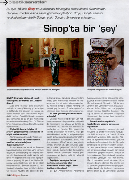 Ayşegül Sönmez, “Sinop’ta bir ‘şey’”, Milliyet Sanat, S. 569, August 2006, s.52-53