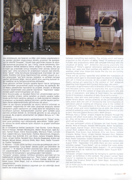 Beral Madra, “Sinop küresel sanat haritasına girdi”, Radikal, 29 August 2006, s.21